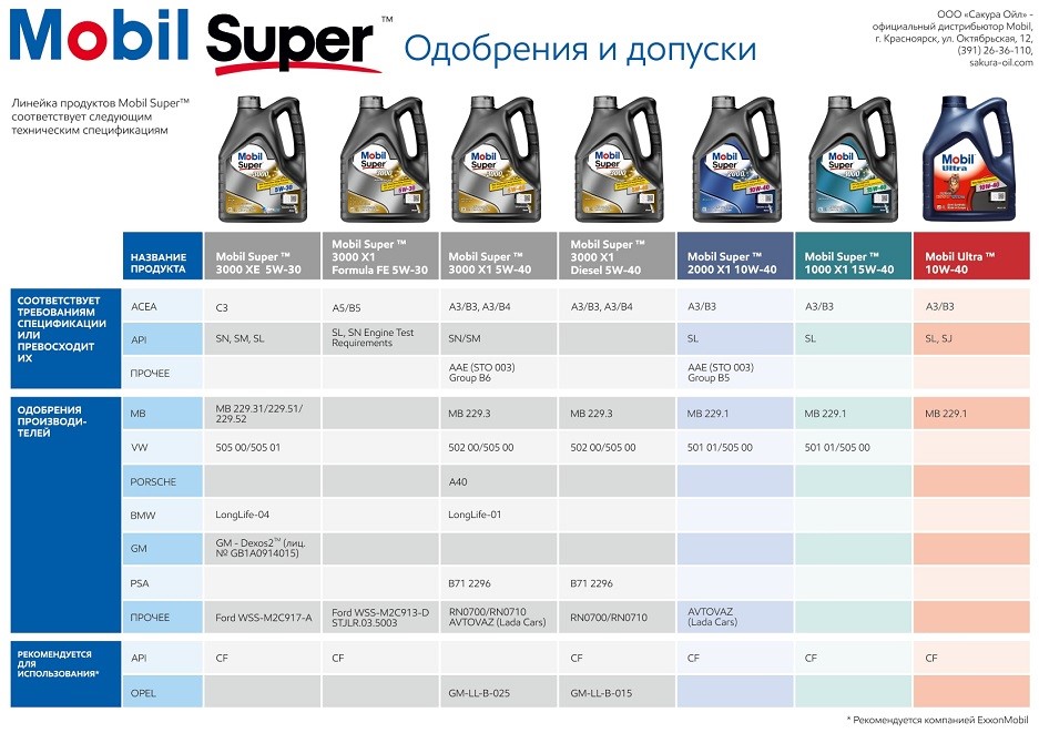 Линейка продуктов Mobil Super™ соответствует следующим техническим спецификациям